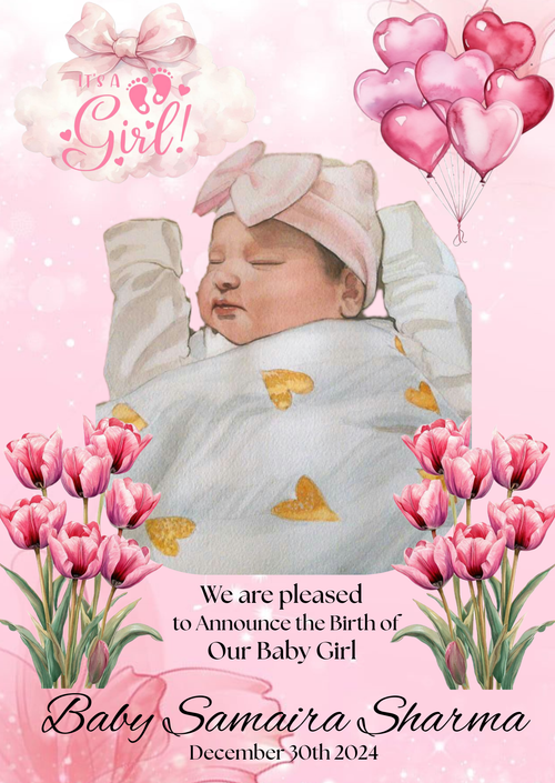 Floral Baby Announcement Editable Template